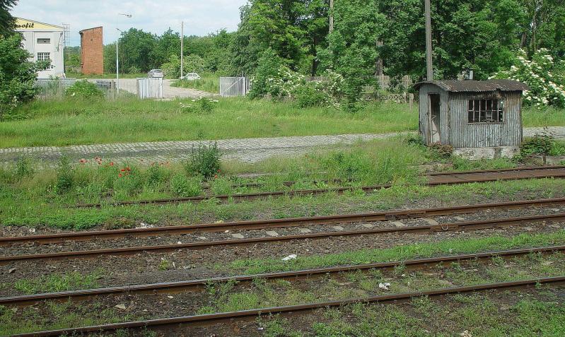 Bierutów. Po tym torze dawno już nic nie jechało. W tle waga wagonowa. Z lewej (poza kadrem) budynek dworca. Widok w kierunku północno-zachodnim, od strony wjazdu z Namysłowa.