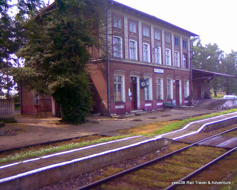 Budynek dworca od strony podjazdu. Poczekalnia zamknięta, nastawnia tak samo. Na piętrze, najprawdopodobniej tylko jedno mieszkanie zasiedlone. Widok w kierunku północno-wschodnim.