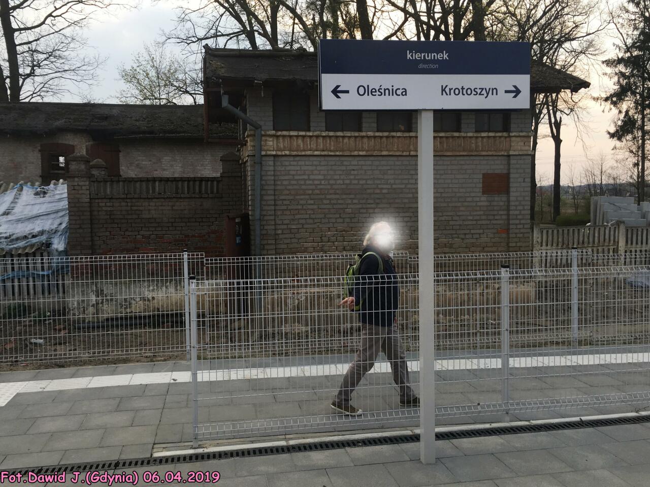 Widok na perony od strony Milicza/Krotoszyna, w kierunku południowym. Jak widać, ino jeden tor i peron został wyremontowany podczas ostatnich prac.