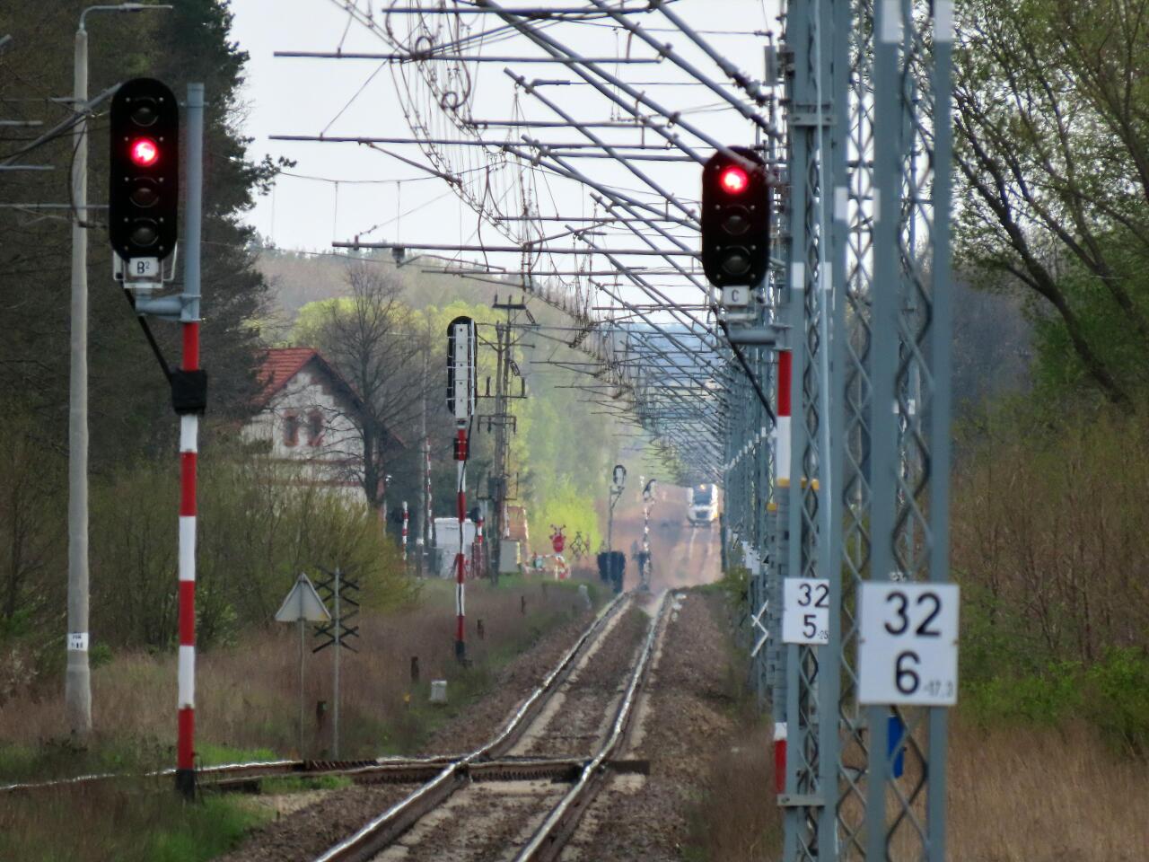 Semafor wjazdowy od strony Grabowna Wielkiego. Z prawej miejsce na drugi tor. Widok w kierunku północnym.