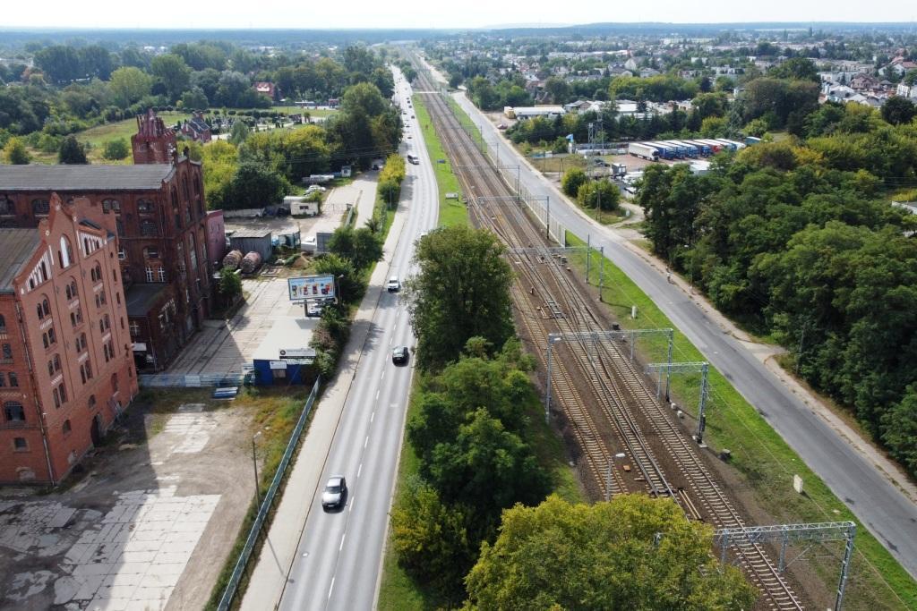 a następnie za nim przechodziła bardzo szerokim wiaduktem nad linią "kluczborską".
