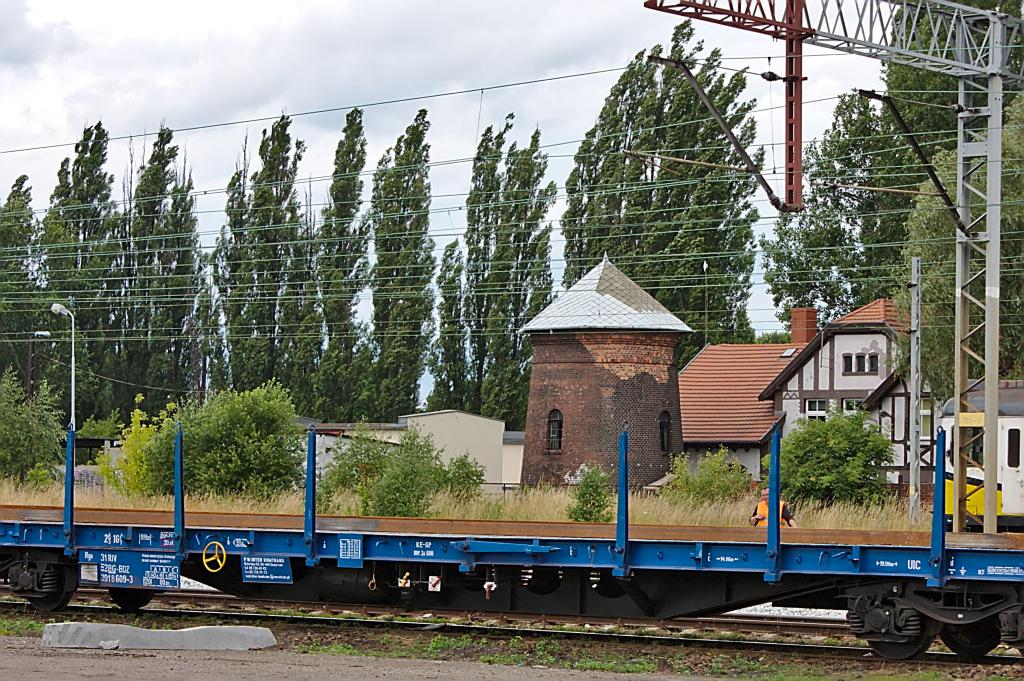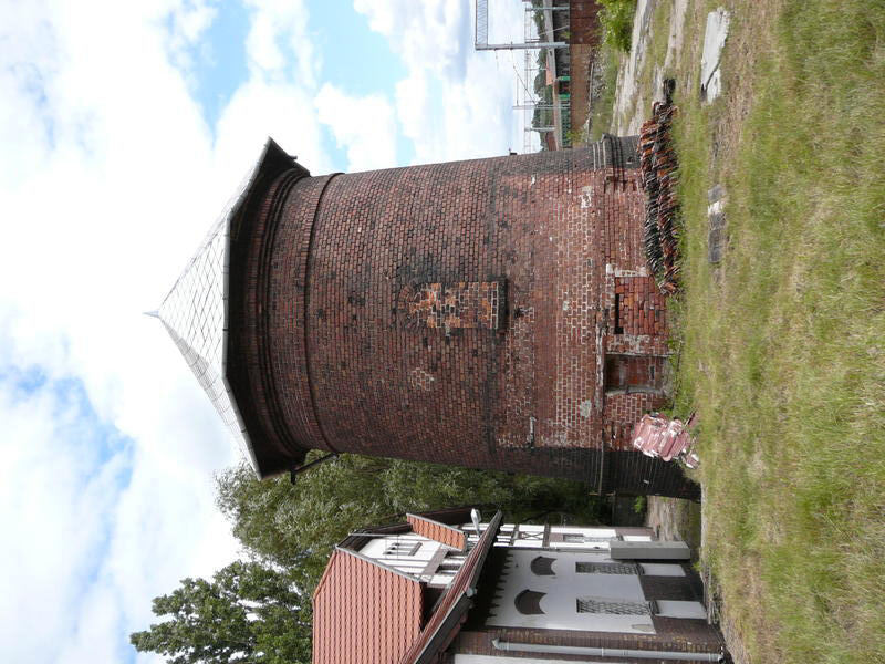 Zielona Góra - wieża wodna. Obiekt położony w zachodniej części stacji, wele dawnej lokomotywowni (za plecami). Widok w kierunku wschodnim.