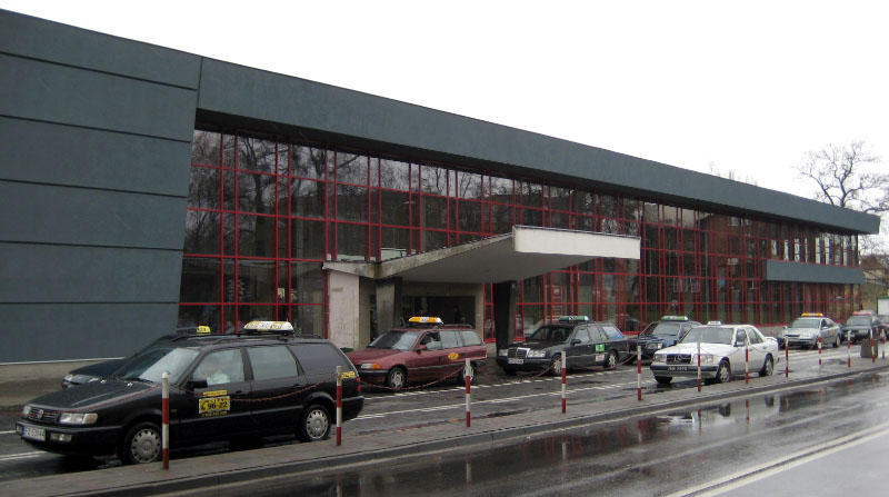 Stacja PKP Zielona Góra. Odnowiony budynek dworcowy w całej swej rozciągłości. Na zewnątrz nie widać żadnego charakterystycznego elementu kolejowego… Widok od strony miasta w kierunku północno-wschodnim.