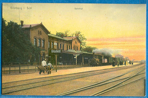 Zielona Góra, dawna wieża wodna wele dawnej lokomotywowni (z lewej, poza kadrem). W prawo perony, w lewo Bieniów/Żary, Czerwieńsk, Sulechów.