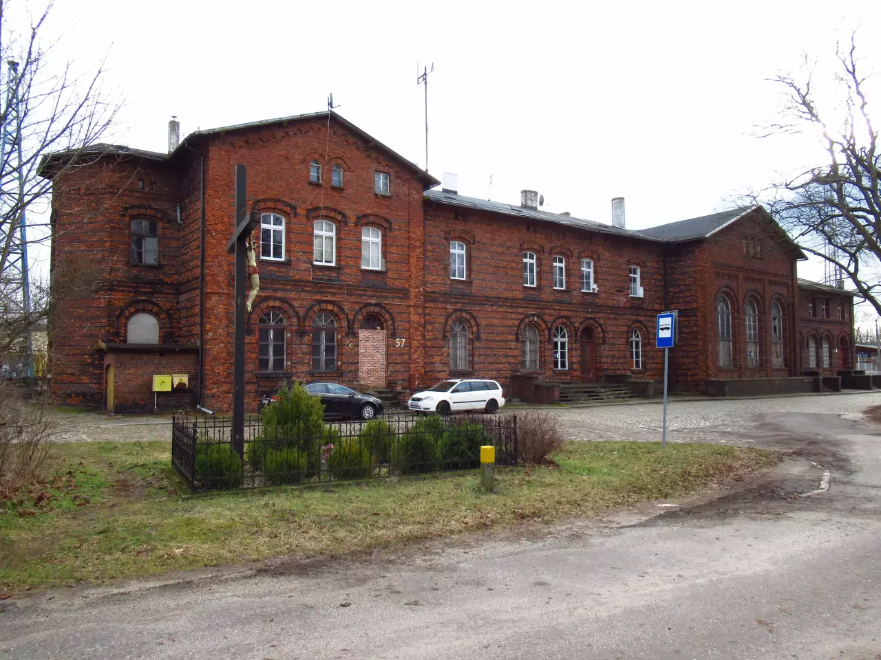 budynki dworcowe: Dolna część zamknięta a górna zamieszkana.