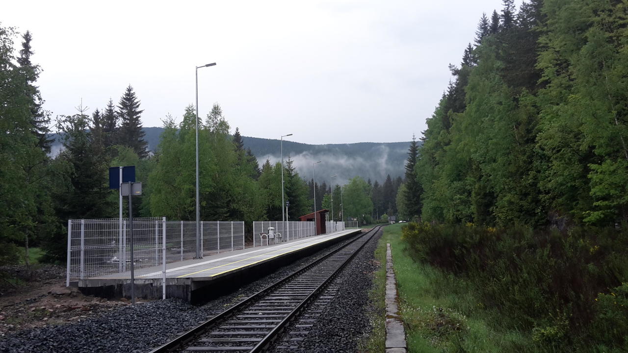 Jest scena wjazdu na stację Szklarską Porębę Hutę (zakręt od strony Białej Doliny). -
