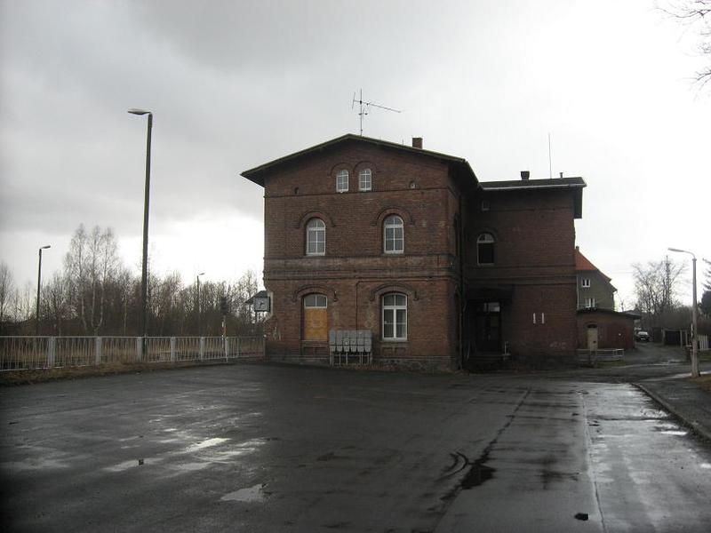 Drugi z kolejowych budynków mieszkalnych w południowej części stacji (ten mniejszy, stojący bliżej nastawni dysponującym). Zwraca uwagę resztka napisu informującego o nazwie stacji. Nowe okna nie są już dostosowane kształtem do łukowatych ościeży, brak im też charakterystycznych szprosów. Widok w kierunku zachodnim; w prawo perony w nowej lokalizacji, Trzciniec/Görlitz, w lewo Żytawa.