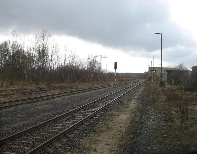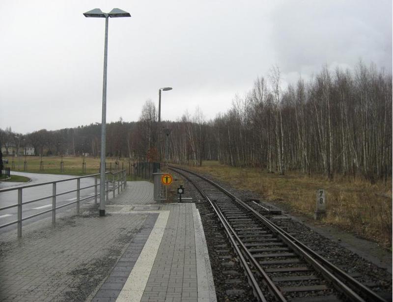 Infrastruktura nowego peronu w Hirschfelde. Widok w kierunku północnym (Trzciniec/Görlitz oraz rozebrana bocznica do zakładów włókienniczych nad Nysą Łużycką).