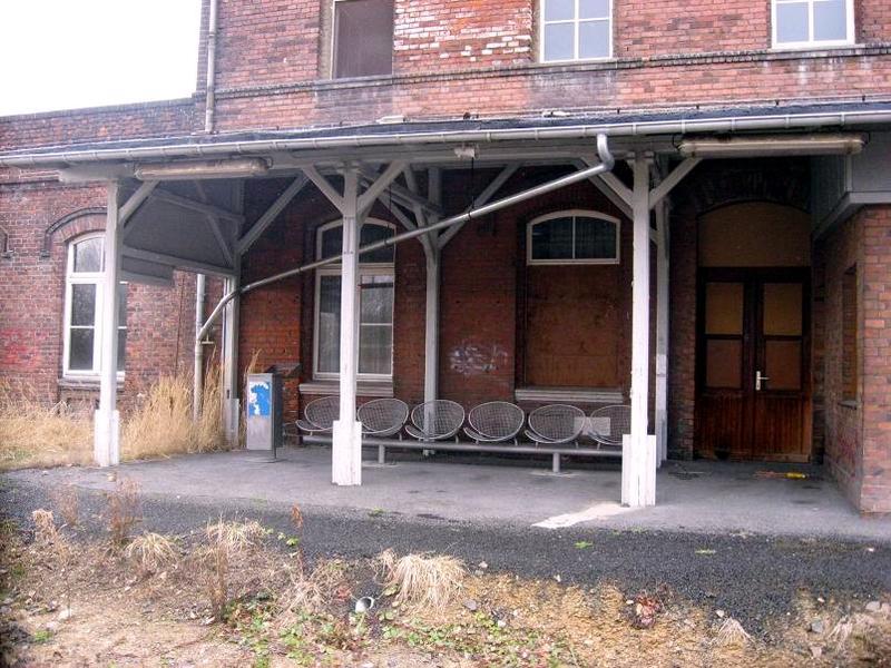W tej przybudówce urzędował niegdyś dyżurny ruchu, który wychodził z lizakiem odprawiać pociągi stojące przy niegdysiejszych peronach. Jak widać, mimo że są to Niemcy lokalna młodzież chętnie wyżywa się na wiekowych zabudowaniach.