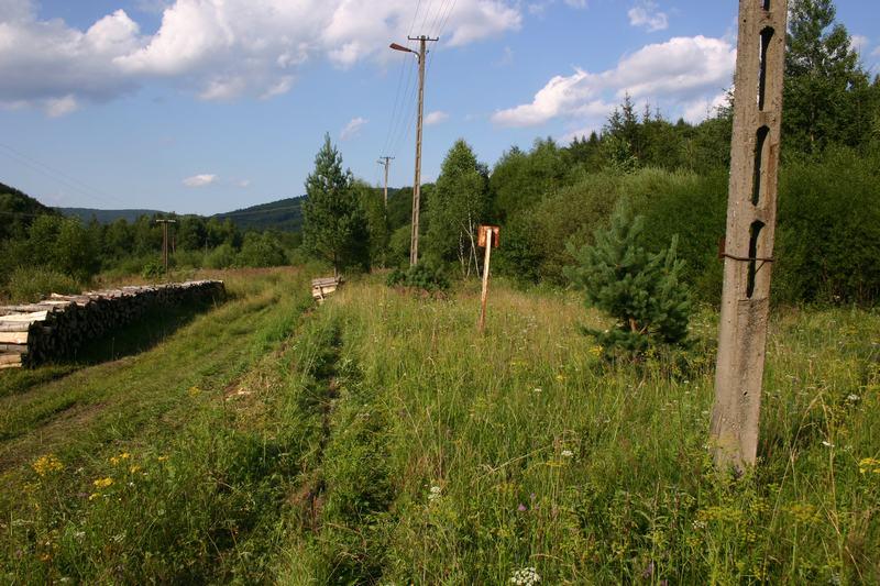Jeden z wielu na linii punktów załadunkowych drewna. Wybudowany jednocześnie z budową linii w 1959 roku. Wykorzystywany dość intensywnie do połowy lat osiemdziesiątych, potem nieco mniej. Kiedy zaprzestano przewozów w 1994 roku, drewno zaczęto wozić samochodami. W mniejszym niż wcześniej stopniu, ale działa do dziś. Tor linii rozdziela się na trzy. Dwa z nich przechodzą przy utwardzonym placu, jeden bokiem przechodzi dalej. Obecnie wszystkie zarośnięte trawą, ale prawdopodobnie wciąż w całości. Jeden budynek przypominający budkę z zapiekankami z lat osiemdziesiątych. W przeszłości jako budynek socjalny, obecnie chyli się ku upadkowi, ale jeszcze stoi, choć już bez szyb i części ścian. |