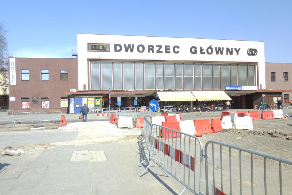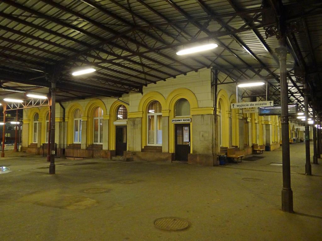 Wejściowy budynek dworca. Po lewej wyjście do miasta, zejście na perony. Po prawej kasy. Zdjęcie w stronę zachodnią.