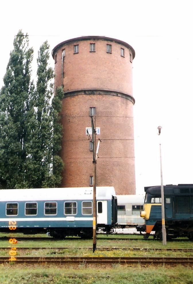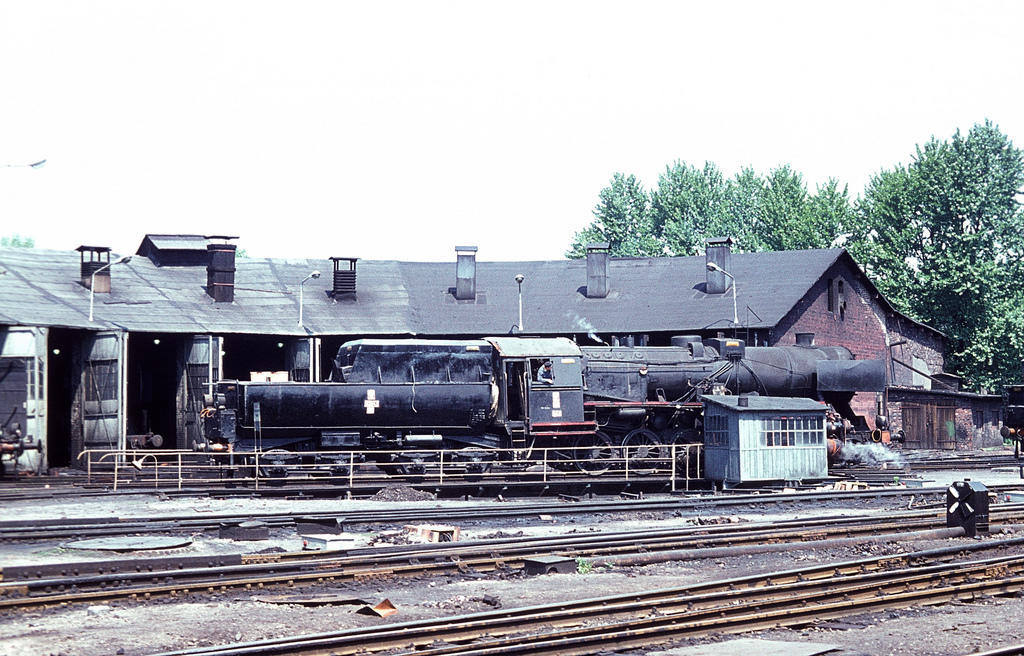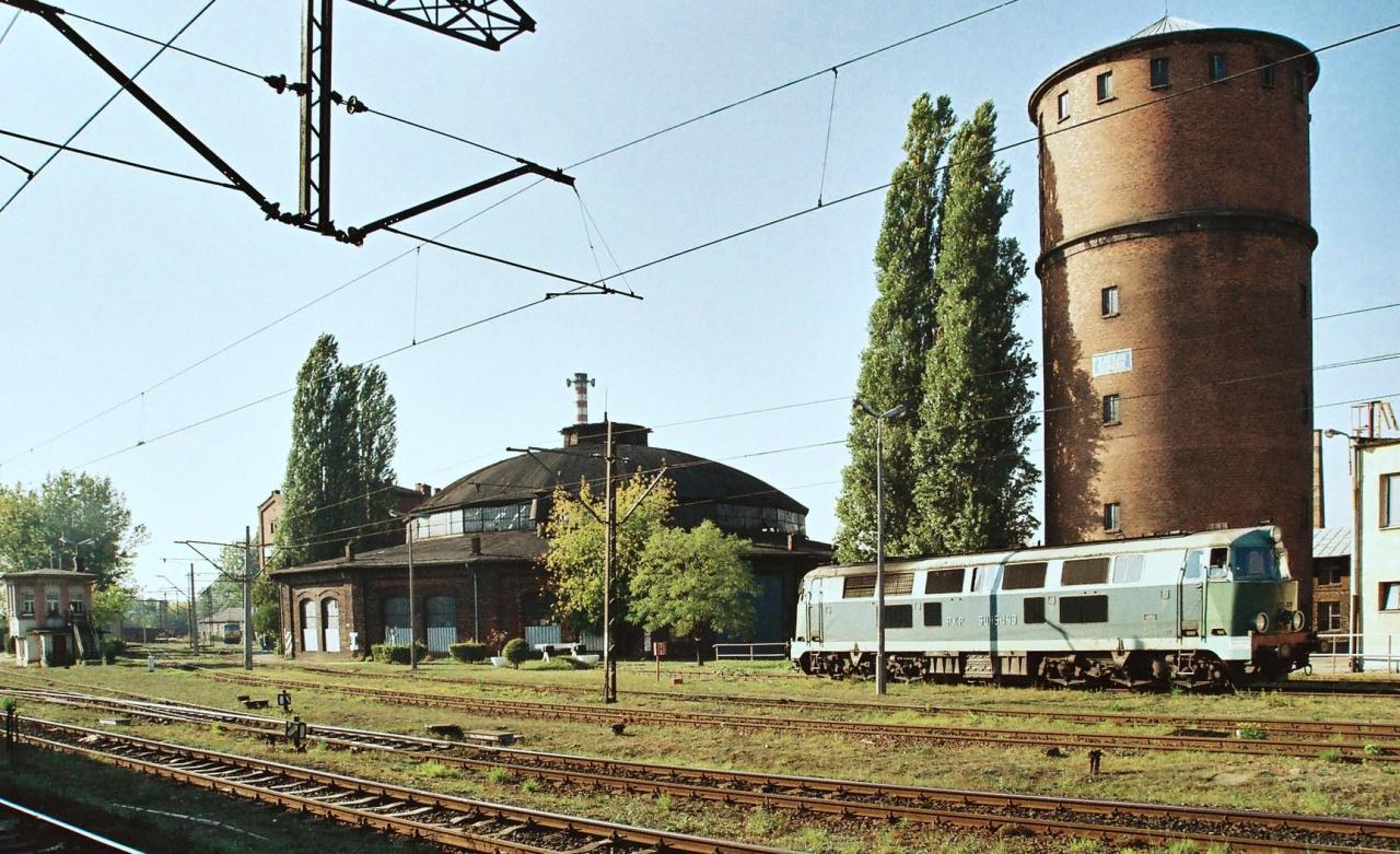 Ty2 na obrotnicy w Bydgoszczy, na tle lokomotywowni wachlarzowej, położonej najbliżej peronu 5, z którego wykonano zdjęcie. Widok w kierunku północnym: w lewo Nakło nad Notecią, Szubin/Poznań, Inowrocław (przez Brzozę Bydgoską), w prawo Maksymilianowo (dalej Gdynia i Tczew), Bydgoszcz Wschód (dalej Chełmża, Toruń, Inowrocław).