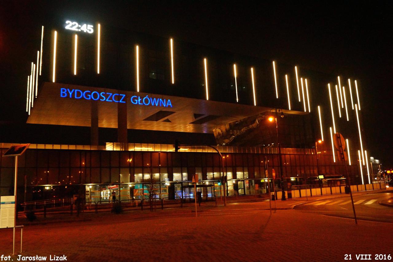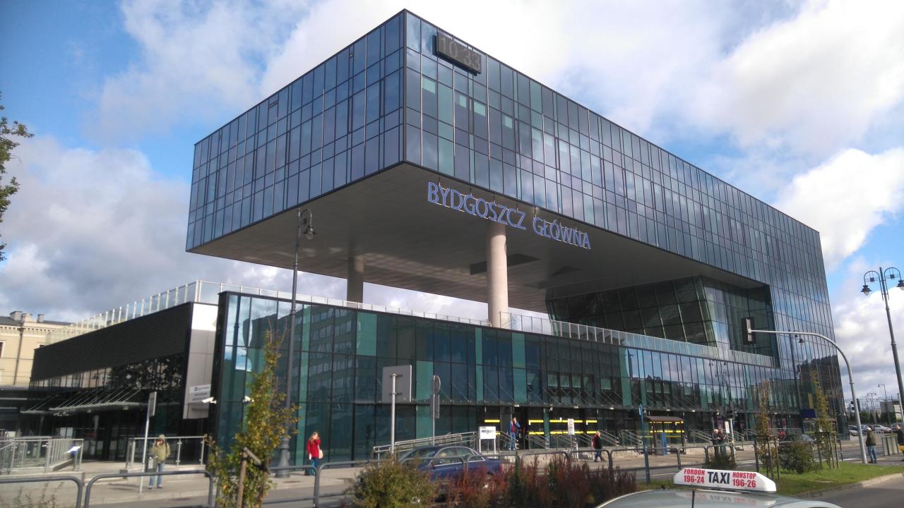 Wejściowy budynek dworca od strony miasta. Obiekt oddany do użytku na jesień 2015. Widok w kierunku północnym: w lewo Nakło nad Notecią, Szubin/Poznań, Inowrocław (przez Brzozę Bydgoską), w prawo Maksymilianowo (dalej Gdynia i Tczew), Bydgoszcz Wschód (dalej Chełmża, Toruń, Inowrocław).