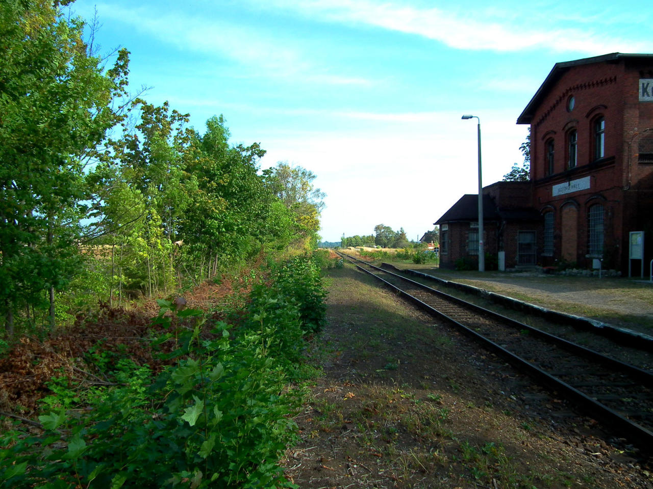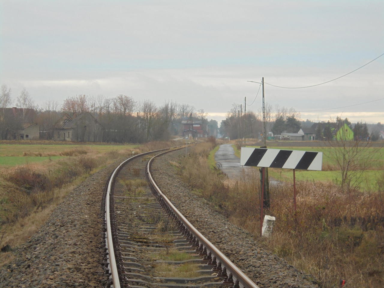 Kotórz Mały, widok w kierunku Jełowej. Po obu stronach toru są pozostałości po torach rozebranych.