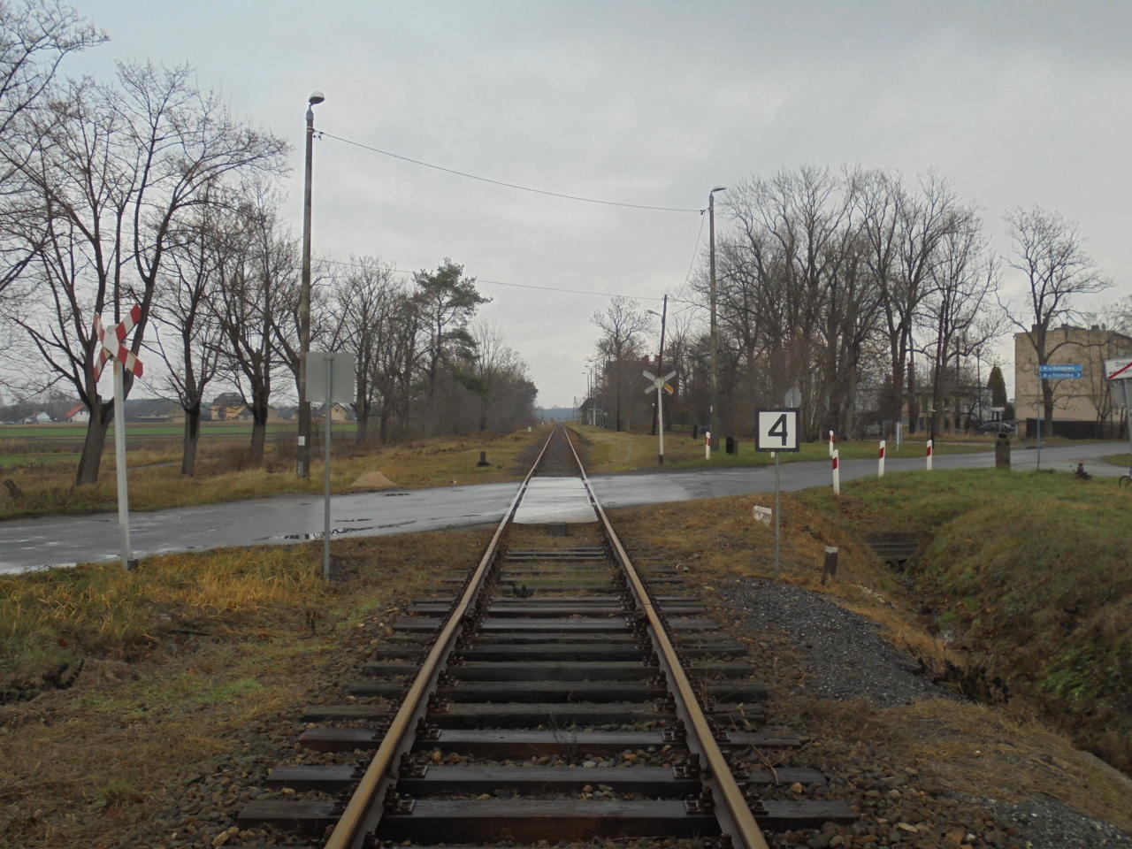 Przed p.o. Kotórz Mały. Przejazd w km. 12,298. Widok w kierunku Jełowej.