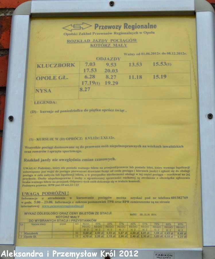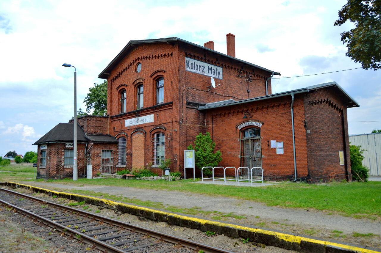 Widok na peron i budynek dworca od strony podg.Bolko/Opola Gł. W przybudówce mieściła się nastawnia. Warto zwrócić uwagę na to, że na budynku dworca napisane jest „Kotorz Mały”. Na pierwszym planie pozostałość po drugim peronie.