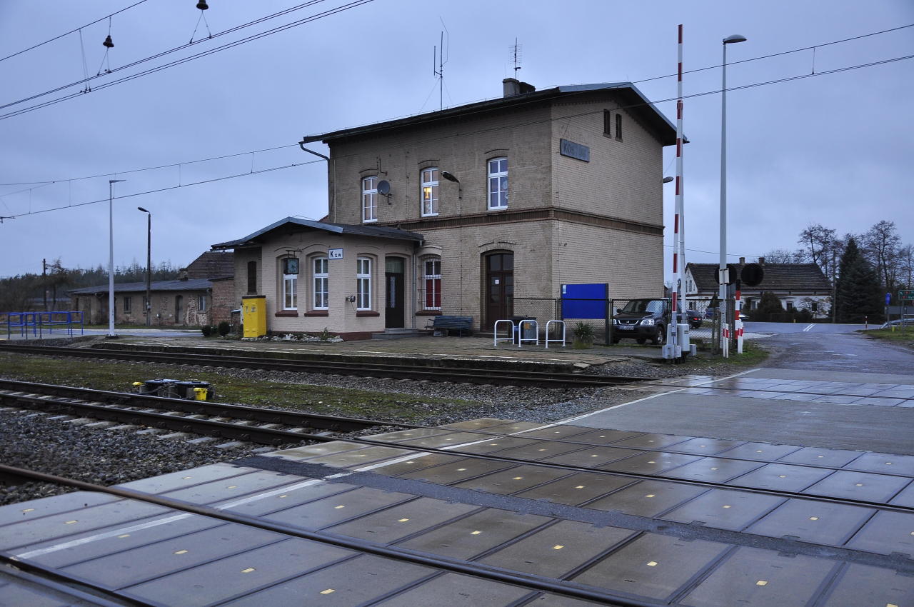 Kostów. Widok na stację od strony Kluczborka.