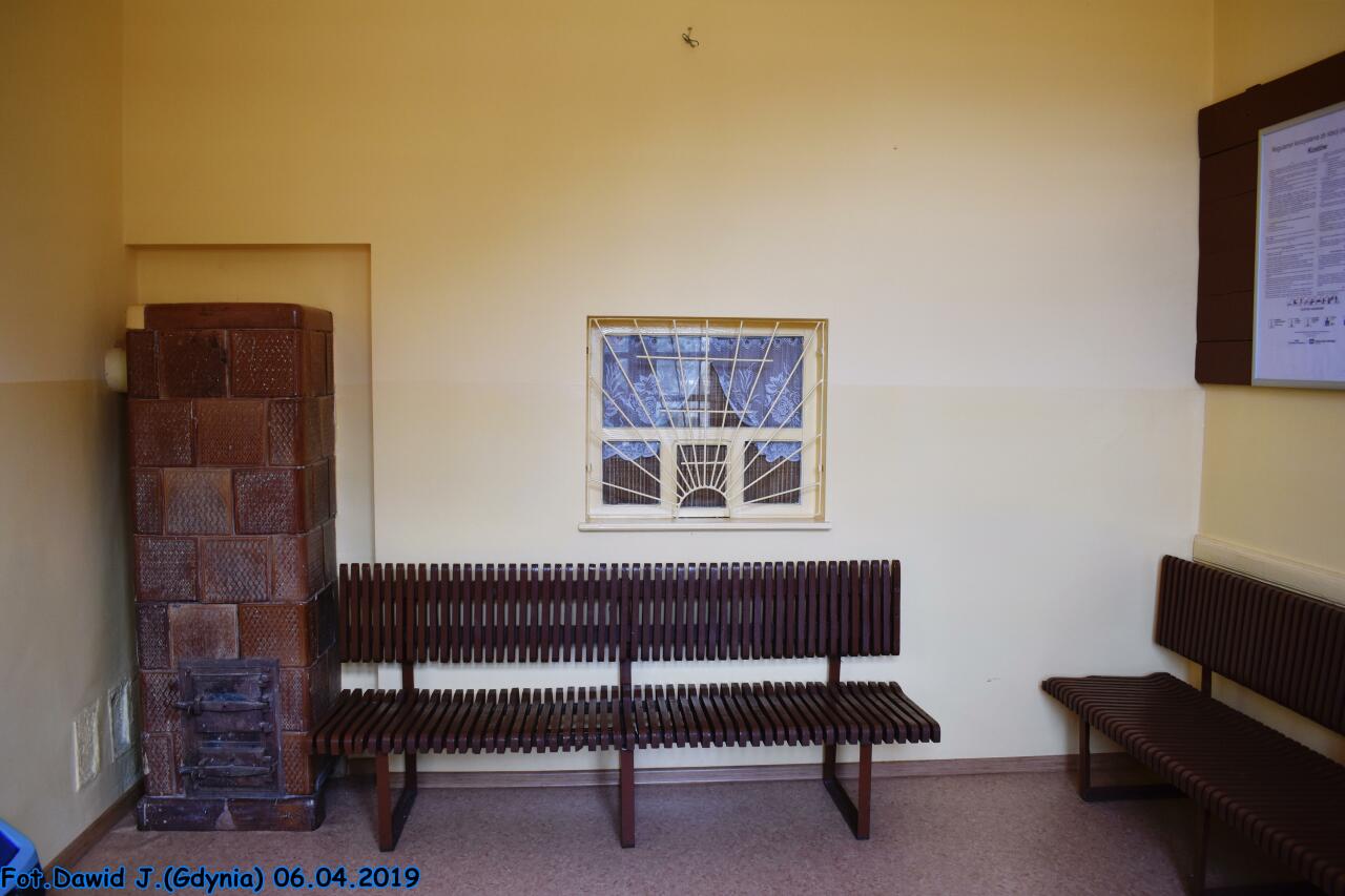 Wnętrze budynku dworcowego.