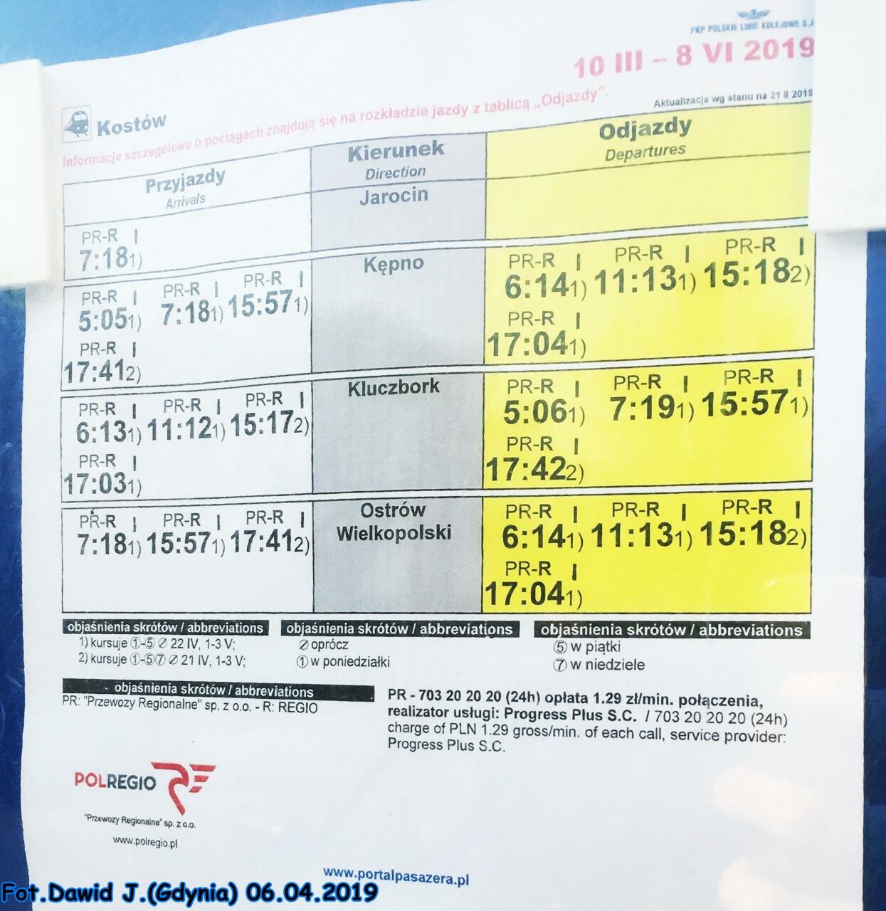 Rozkład jazdy obowiązujący od 10.03.2019 do 08.06.2019.