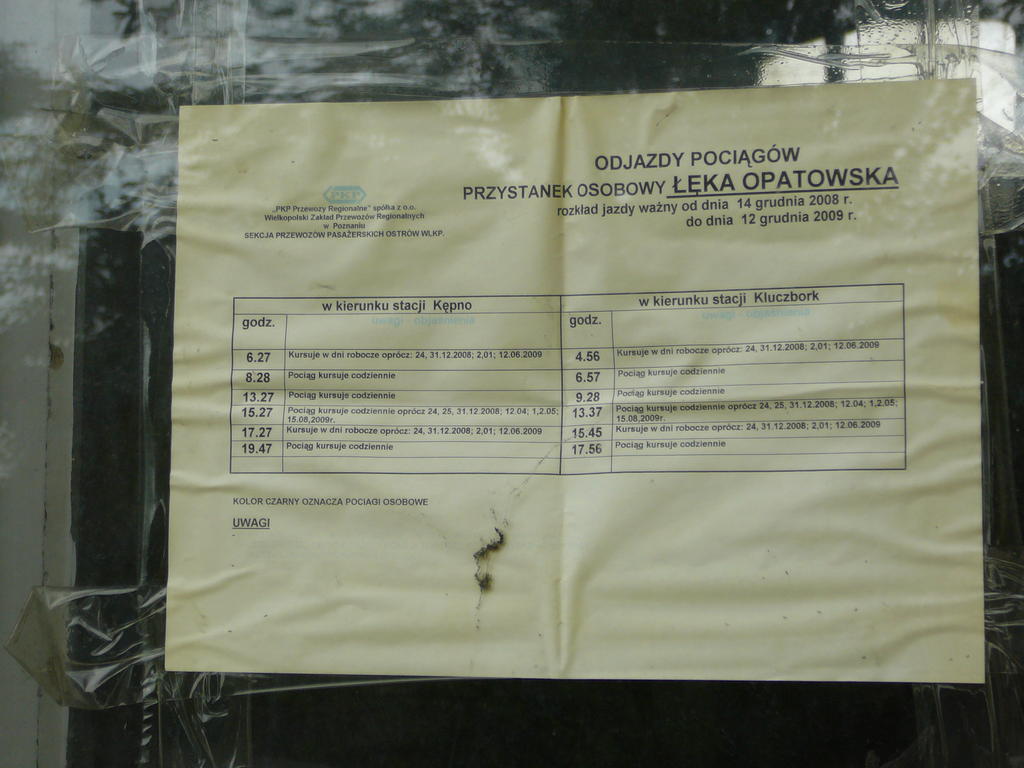 Łęka Opatowska. Drugi rozkład jazdy, ale z poprzedniego roku.