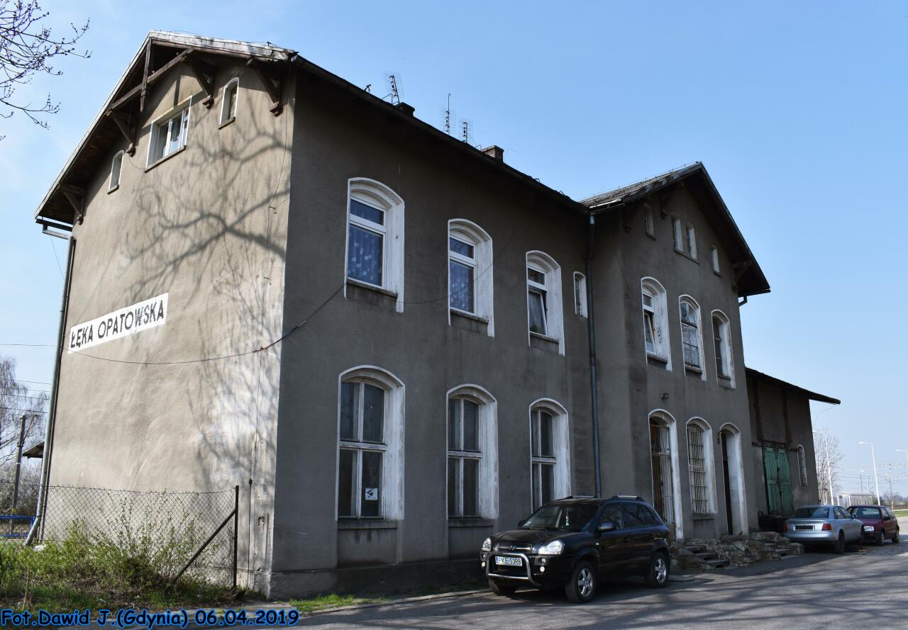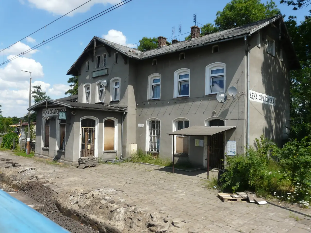 Łęka Opatowska. Budynek dworca od strony podjazdu (ul. Dworcowej).