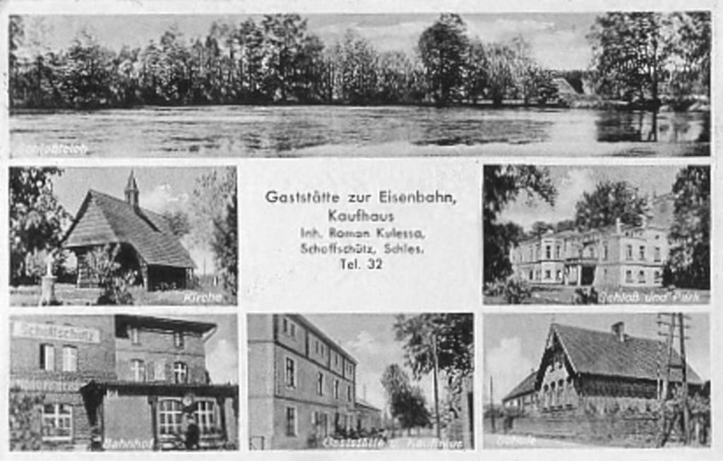 Stacja i linia w remoncie. Z lewej magazyn towarowy, odcięty od sieci. W tle budynek dworca z nastawnią dysponująca na parterze. Widok od strony wjazdu z Olesna/Kluczborka.