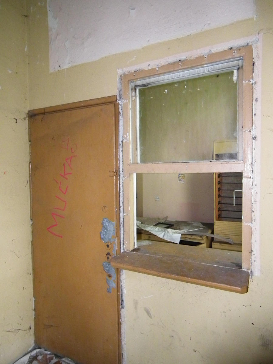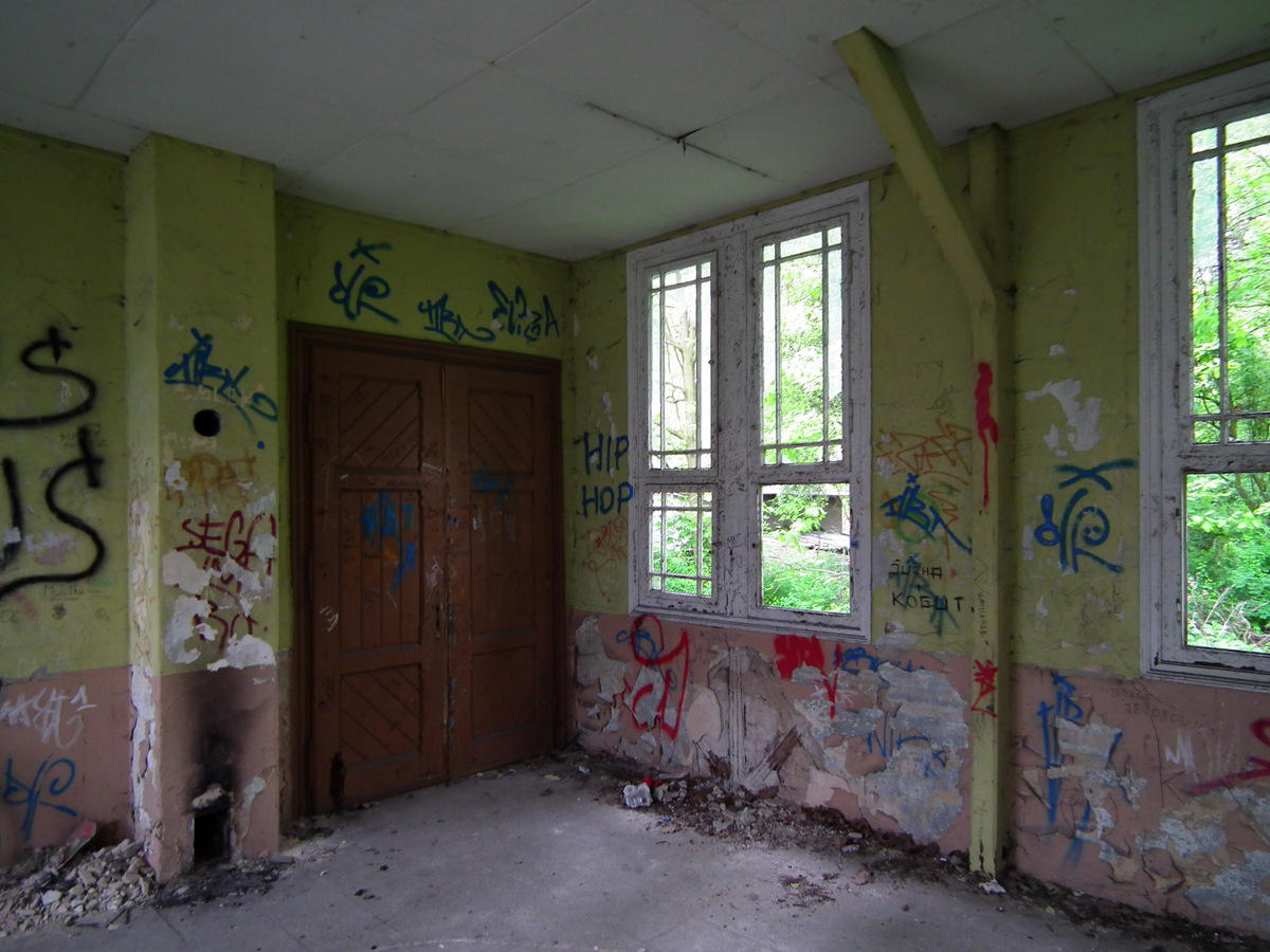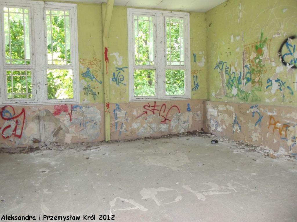 Poczekalnia zdewastowana, ale można do niej wejść.