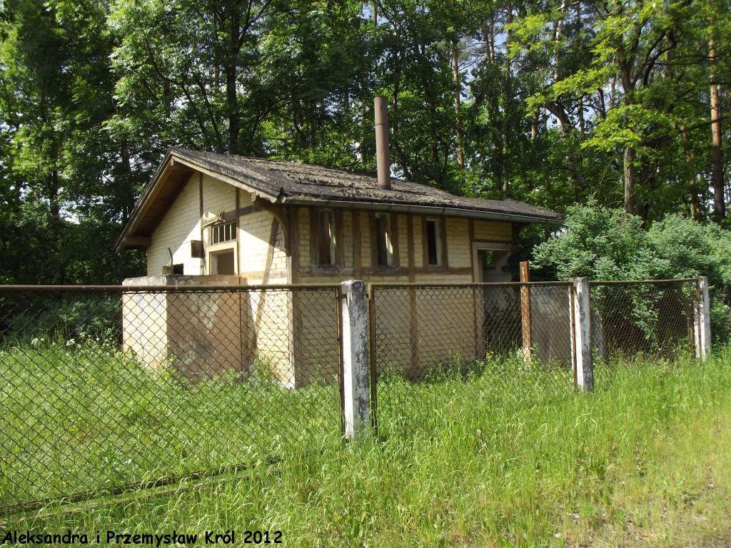 Nieczynny budynek dworca i nastawnia dysponująca. Widok od strony peronów i wjazdu z Kluczborka.