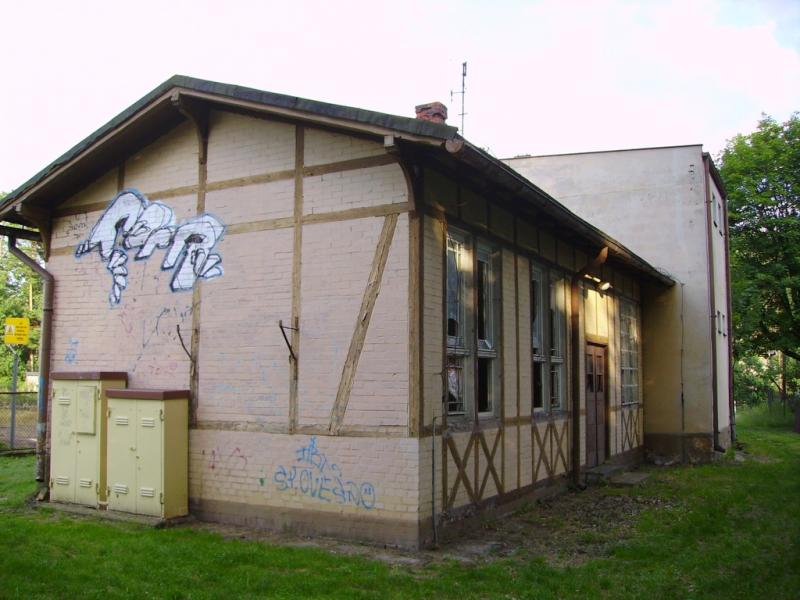 Toalety. Widok od strony peronu: w lewo dworzec, w prawo Kluczbork.
