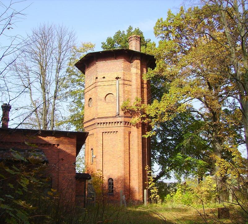 Wieża wodna przy parowozowni Pokój, niestety zamknięta.