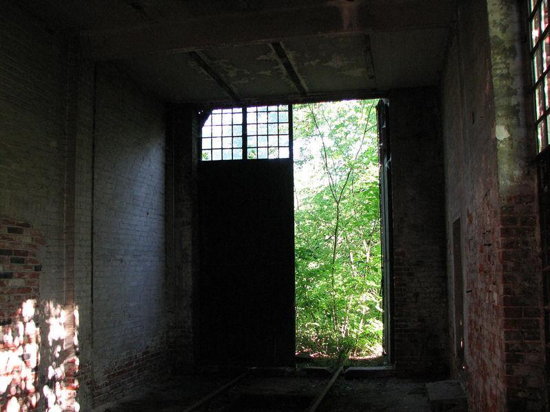 Wnętrze parowozowni. Widok w stronę wejścia.