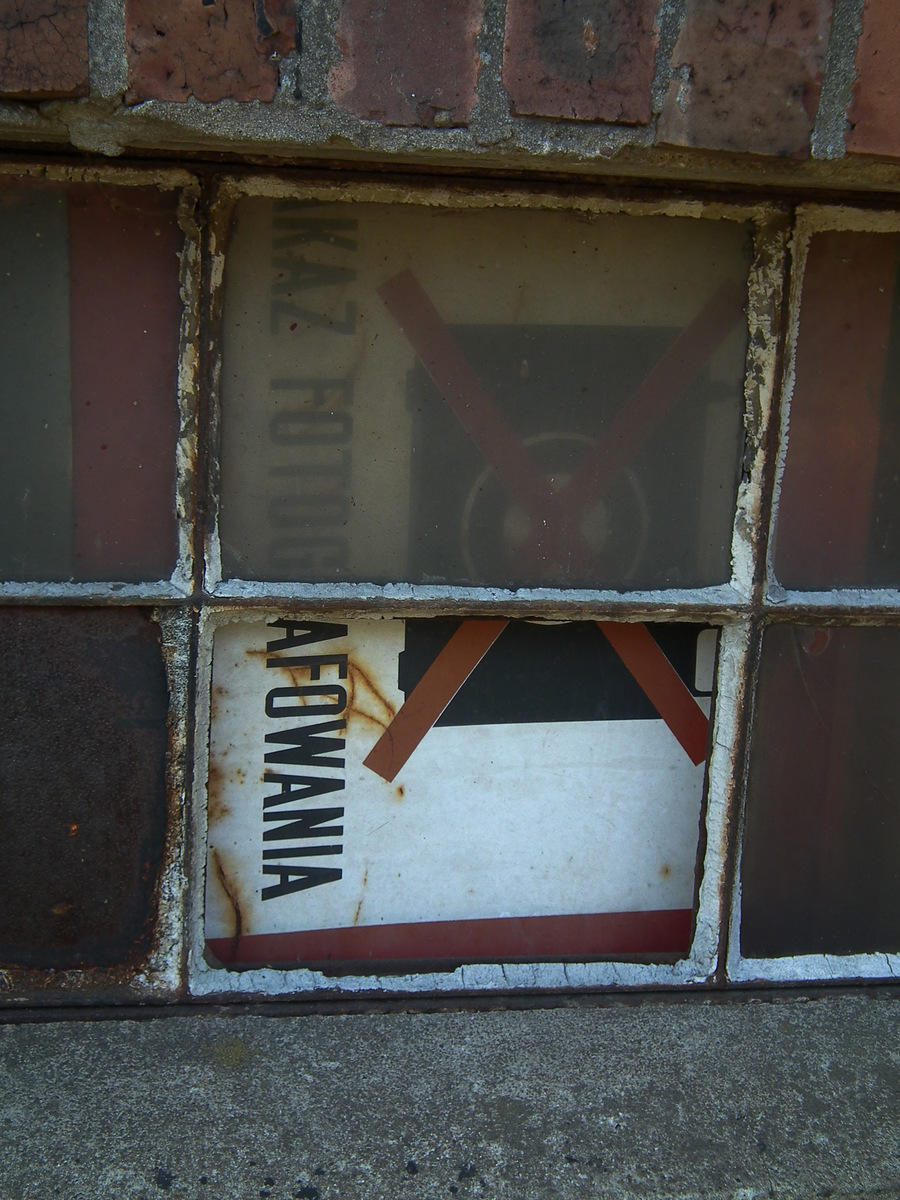 Straszak z minionej epoki, jako zatyczka dziury w oknie, w małym budyneczku naprzeciw dworca.