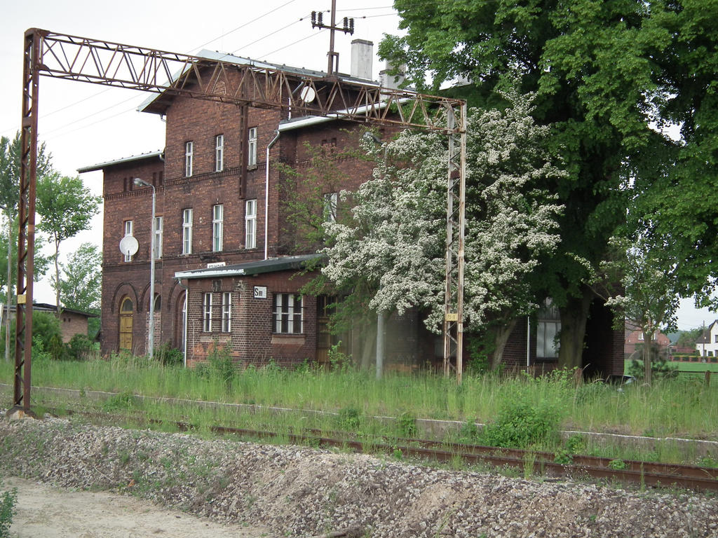 Budynek dworca wraz z była nastawnią dysponującą "Smd", która mieściła się w przybudówce, po prawej stronie budynku. Widok od strony peronów i wjazdu z Kluczborka.