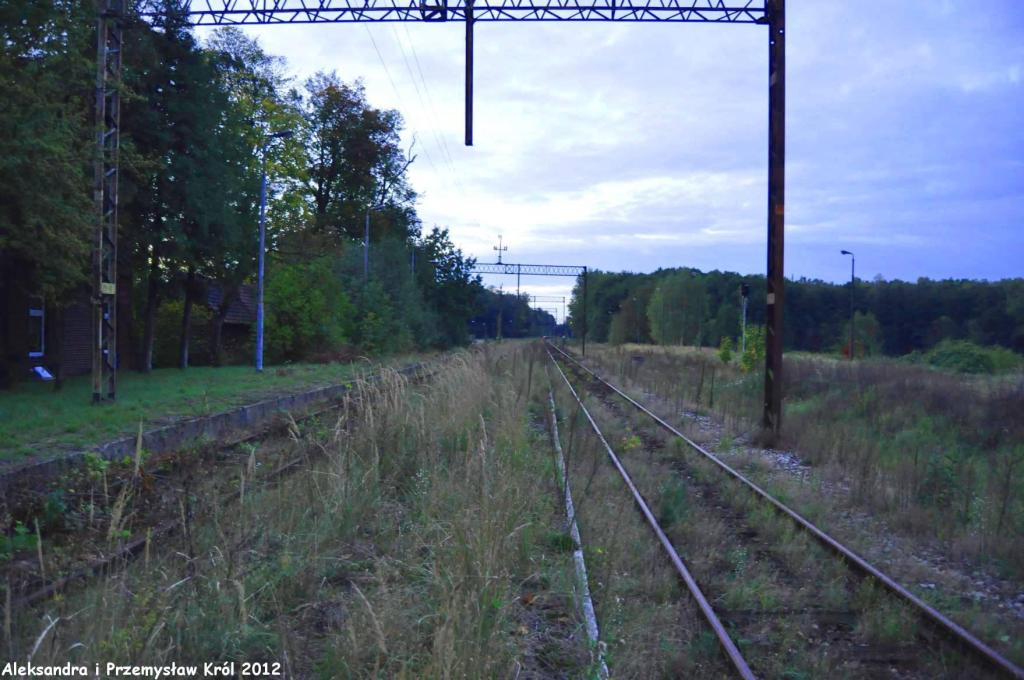 Widok od strony wjazdu z Kluczborka. Po prawej miejsce po zdemontowanych torach. W tle, po lewej budynek dworca.