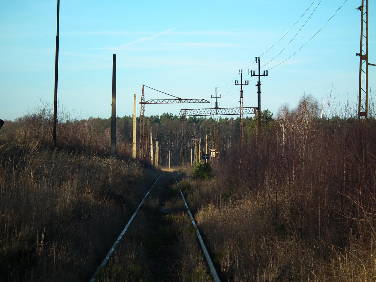 W stronę Kluczborka - trakcja już tylko nad jednym torem…