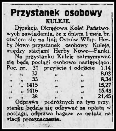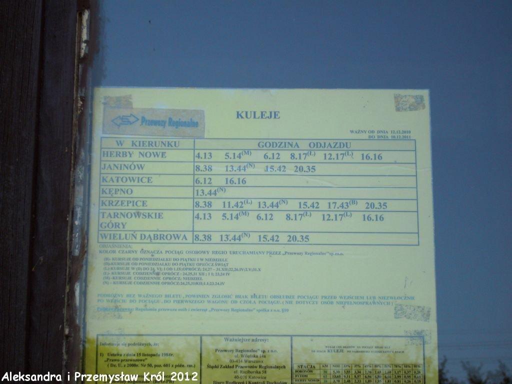 Przystanek kolejowy KULEJE, na linii Kalety-Podzamcze,otwarto 1 maja 1933 roku.