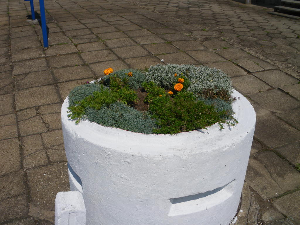 Dworzec jest w bardzo dobrym stanie, świadczą o tym świeżo posadzone kwiatki na peronie.