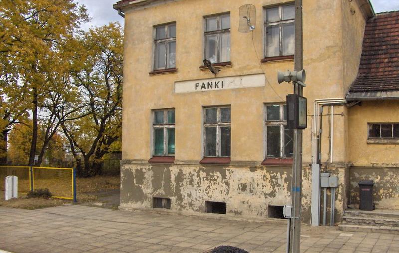 Panki. Budynek dworcowy od strony placyku przed stacją.