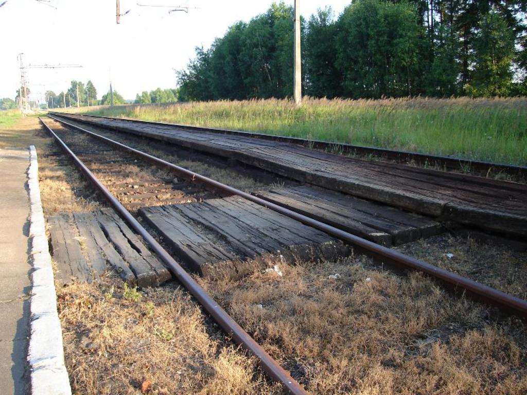 Peron 2. Unikalna konstrukcja z podkładów. Widok w stronę Herbów Nowych.