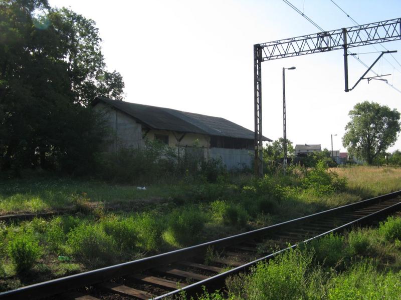 Nieczynny magazyn stacyjny popadający w ruinę.