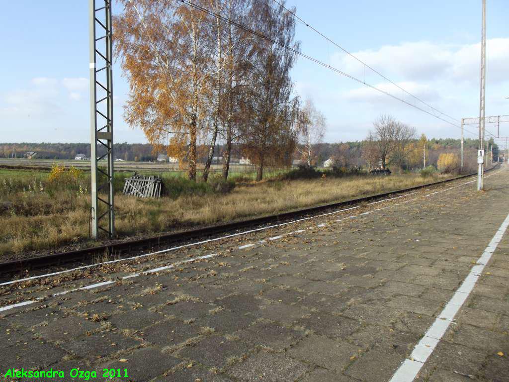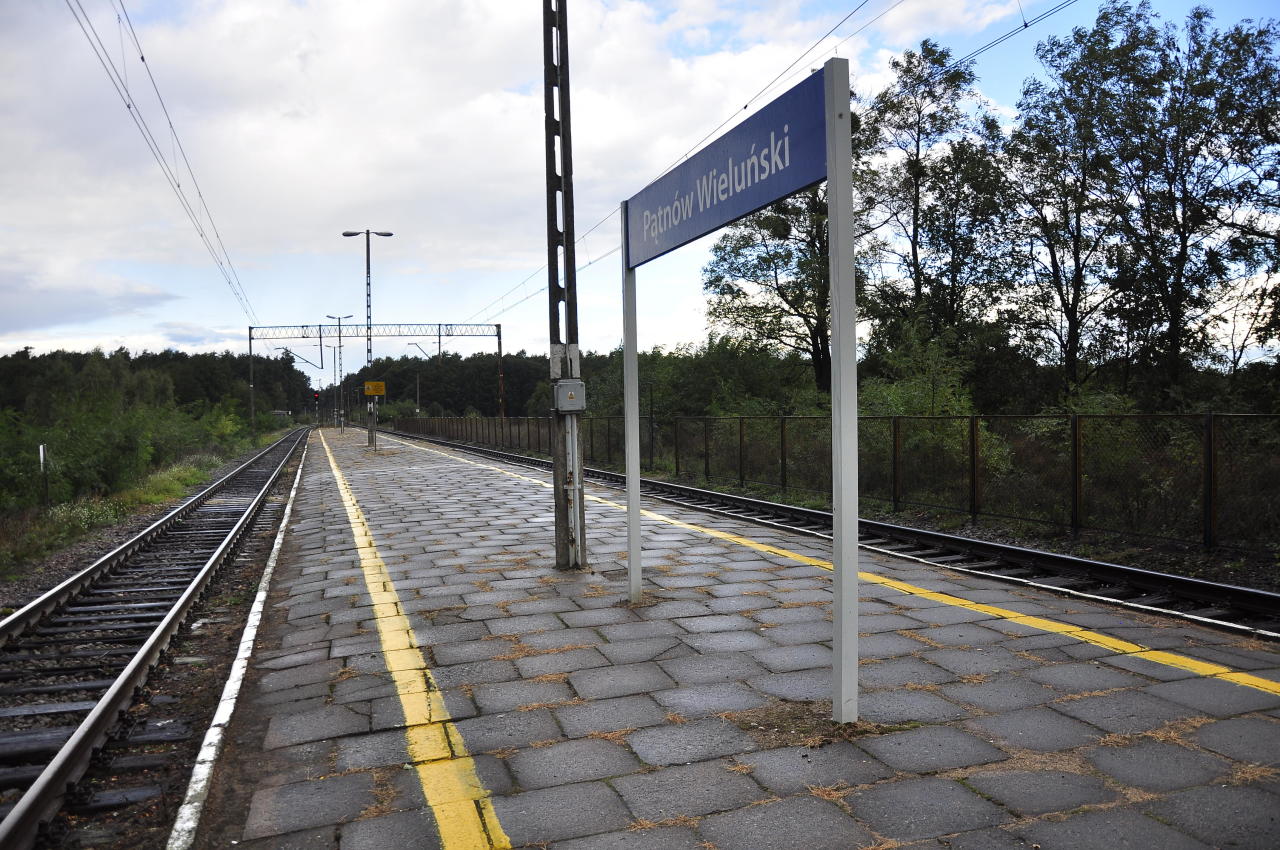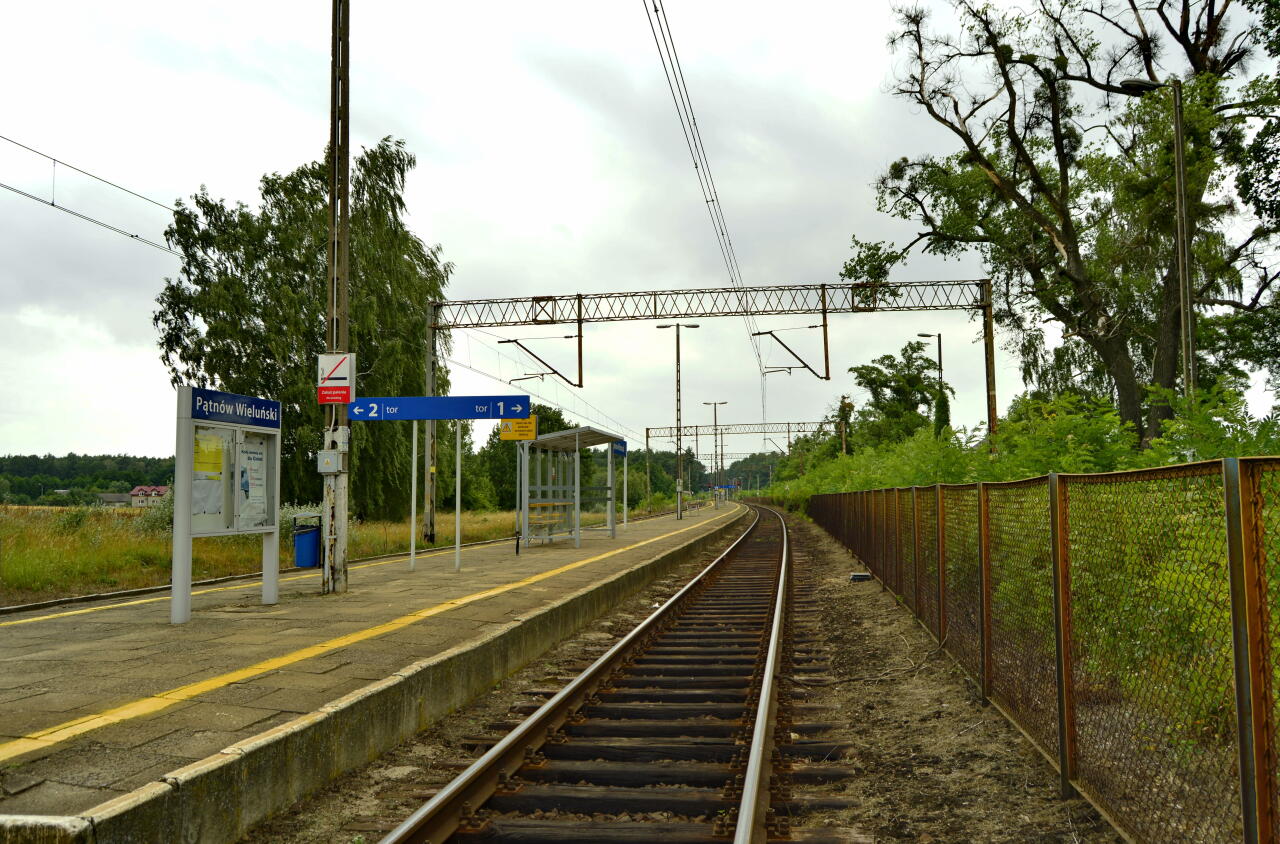 Widok na peron stacji Pątnów Wieluński w kierunku północno-zachodnim; w lewo Herby Nowe, w prawo Wieluń.