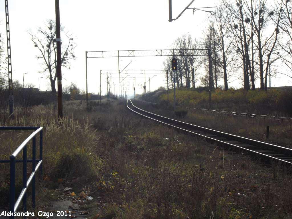 Widok z toru numer 1 w stronę Herbów Nowych. Widoczna tarcza powtarzająca semafora wyjazdowego.