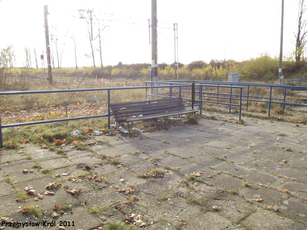 Ławka na stacji w Pątnowie Wieluńskim, pełni funkcję poczekalni pod chmurką.