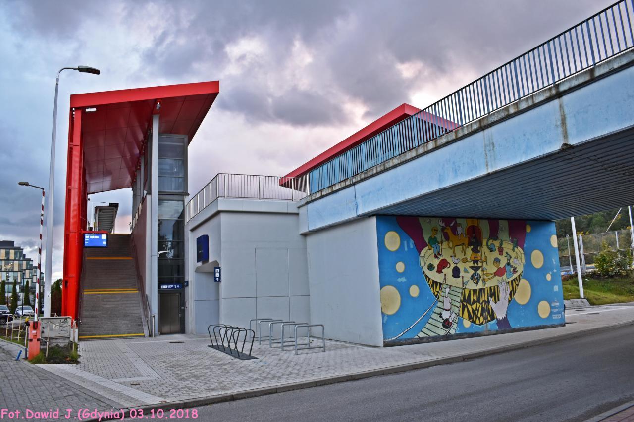 Wiadukt nad ul. Sportową. Wejścia na perony 1-2 znajdują się po lewej stronie. W lewo Gdańsk Osowa/Bydgoszcz Główna, w prawo Gdynia Główna.