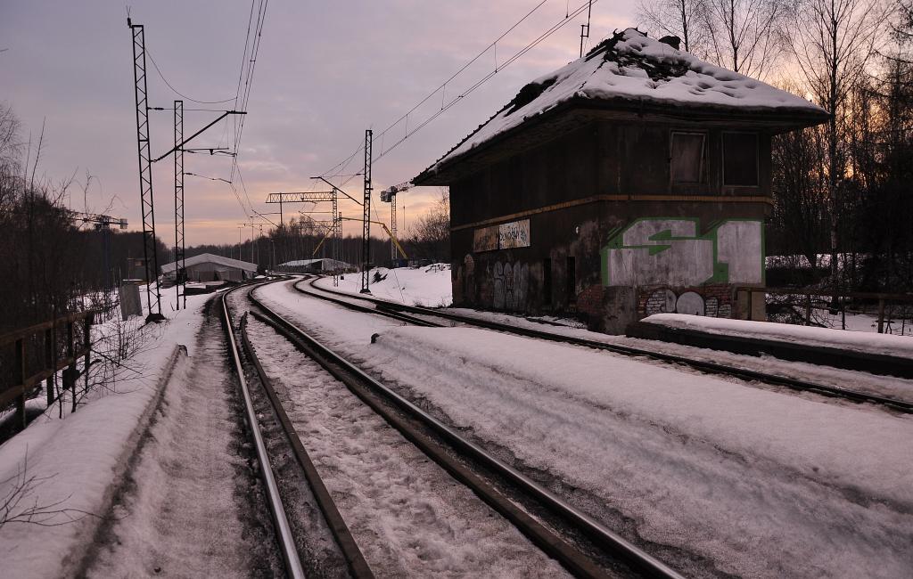 Widok w kierunku Chorzowa, po prawej nieczynna nastawnia; w głębi kadru widzimy budowę wiaduktu kolejowego nad budowanym ciągiem autostrady A1.
