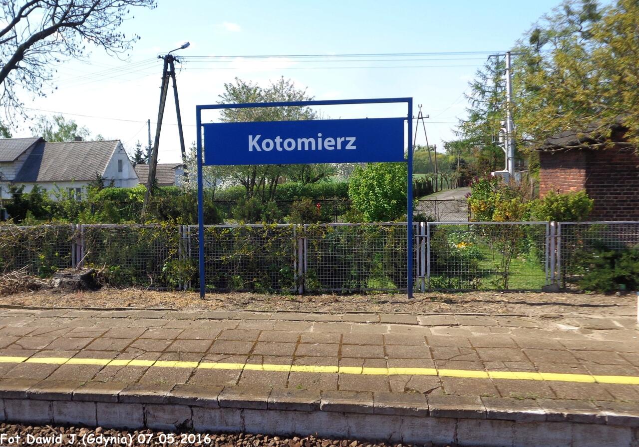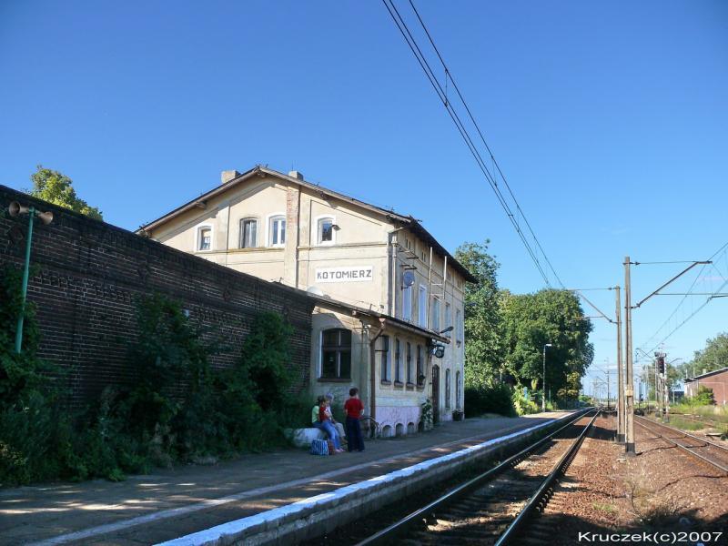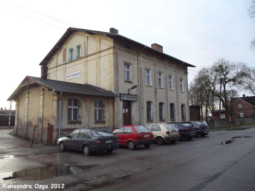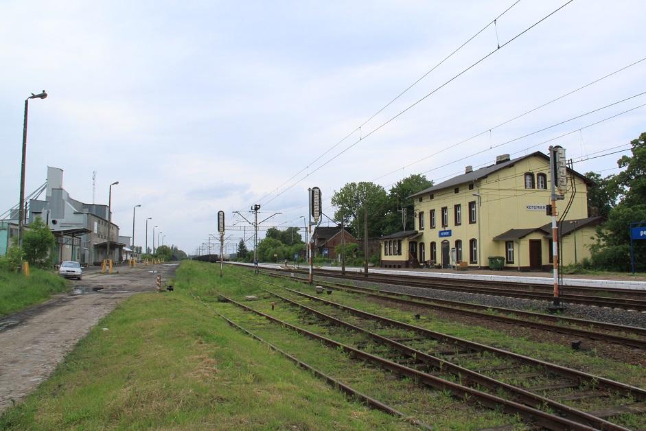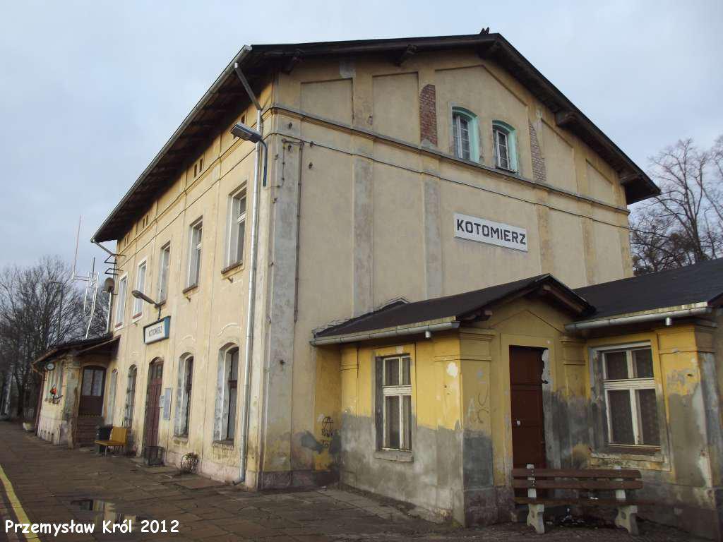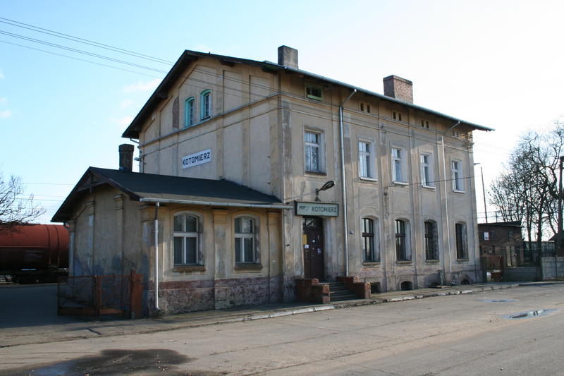 Budynek dawnego magazynu, ze słabo już tylko widocznym napisem Kotomierz- położony na północ od budynku stacyjnego, po drugiej stronie torów….