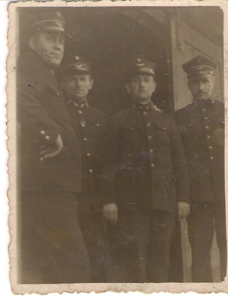 Kolejarze stacji Kotomierz. Drugi od lewej - Józef Perlik. Lata (prawdopodobnie) - międzywojenne.