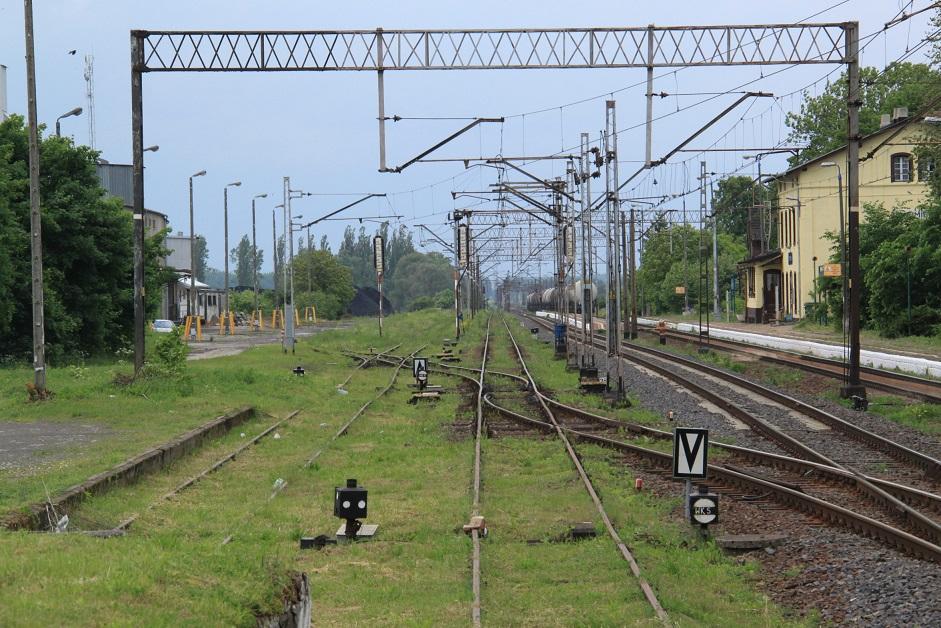 Wyjazd na Bydgoszcz. Na wprost nieużywany tor do stacji transformatorowej.