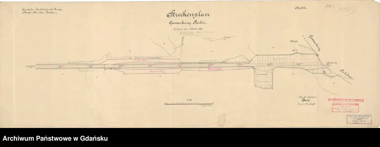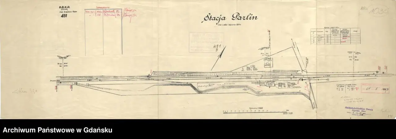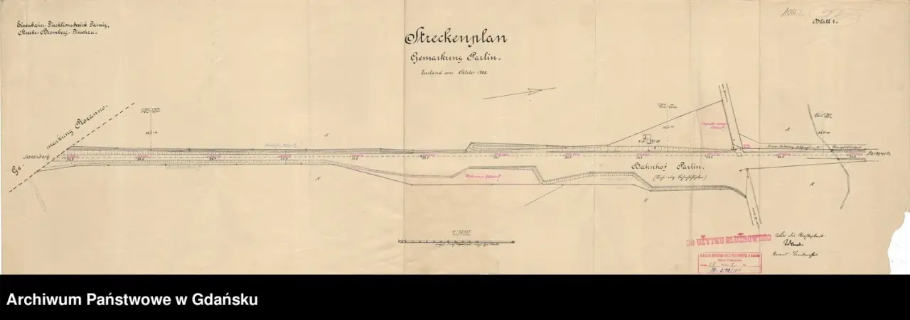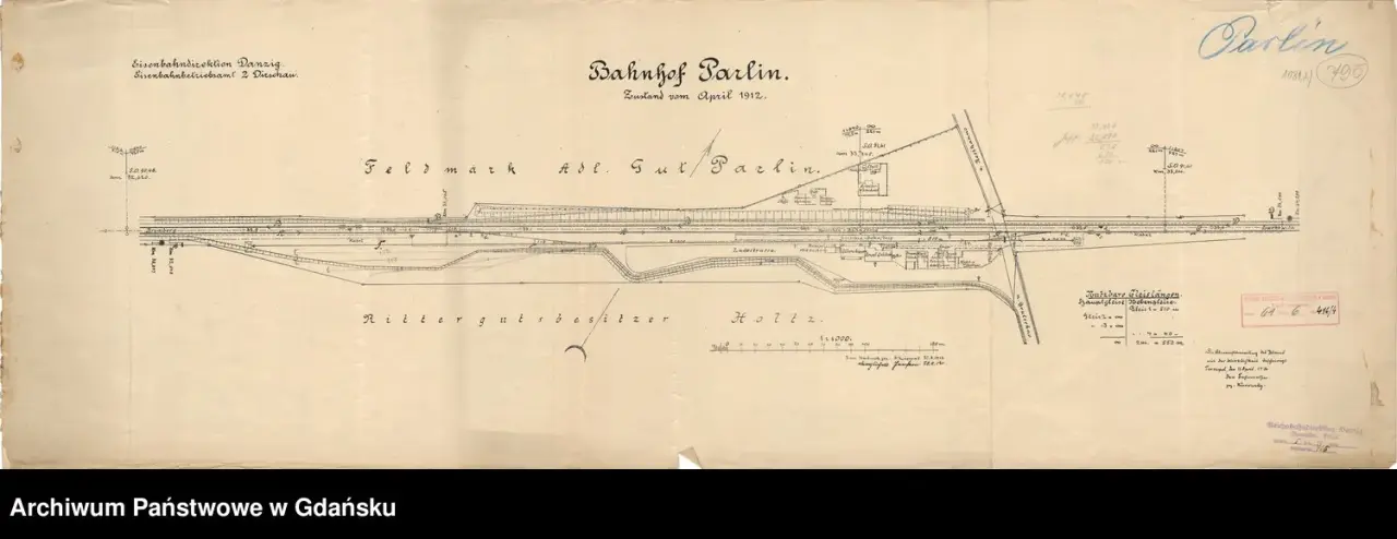 Polski plan stacji Parlin. Stan na 1 stycznia 1931 r. Materiał zasobów Archiwum Państwowego w Gdańsku.