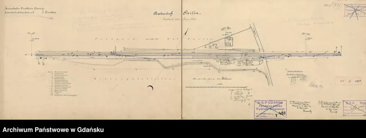 Plan stacji. Stan na czerwiec 1918 r. Materiał zasobów Archiwum Państwowego w Gdańsku.